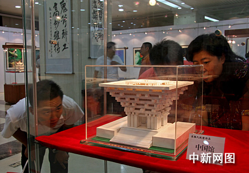 紙塑世博會中國館的作者名叫吉勝久,其手工作品展今天上午在首都圖書館開幕。他說:“國慶即將到來,我特意制作了這個世博會中國館紙模為建國六十周年獻禮!”
