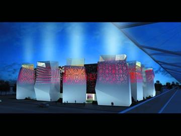 俄羅斯館占地6000平方米,是世博會(huì)最大的展館之一。它的外圍是12座不規(guī)則形狀的塔樓,聳立于草坪和水景之間,塑造出俄羅斯館傳統(tǒng)與現(xiàn)代相結(jié)合的外形。據(jù)V.P.Strashko介紹,“12”寓意著時(shí)間和生命的完整,塔樓紅、白、金三種顏色則分別象征著美麗、純潔和財(cái)富。此外,這些形狀不同的塔樓在功能上也各有分工,有的是餐廳,有的是俄羅斯城市風(fēng)采展示廳,其他的則是辦公區(qū)、貴賓廳、禮品店……在塔樓邊,還有一個(gè)露天咖啡廳。其中,兩座俄羅斯區(qū)域塔樓在世博會(huì)期間每?jī)芍軐⑴e辦聯(lián)邦主體推介展示活動(dòng),向參觀者展示俄羅斯各聯(lián)邦區(qū)域的特色;在創(chuàng)新塔樓內(nèi),俄羅斯館將通過展示城市基礎(chǔ)設(shè)施方面的最新成就,如潮汐電站工程,以展現(xiàn)俄羅斯當(dāng)代城市生活的整體圖景。