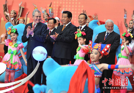 1日上午八時半,上海世博會開園儀式在世博中心舉行。上海市市長韓正主持儀式。全國政協(xié)主席賈慶林、國際展覽局主席讓·皮埃爾·藍峰、全國政協(xié)副主席王剛、國務院副總理王岐山、全國政協(xié)副主席杜青林、全國政協(xié)副主席錢運錄、國際展覽局秘書長洛塞泰斯等來賓一道出席開園儀式。