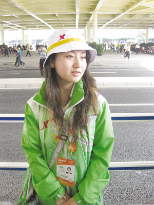 張筠老家在江西,是復(fù)旦大學(xué)視覺藝術(shù)學(xué)院的大一學(xué)生,標準的90后女孩。通過網(wǎng)上報名并獲得任用后,她成為了上海世博會首批志愿者,而如果再細分則可稱作“高峰期志愿者”。“每天早上7點半不到就得到園區(qū),晚上下班時間不定,至少10點以后吧。”張筠告訴記者,她每天要做的,就是站在這處位于商業(yè)中心最繁華的街角,為任何有需要的游客提供力所能及的幫助。接受采訪時,女孩才正式上崗短短半日,“已經(jīng)為至少20個游客指路,或是回答他們的一些咨詢。”