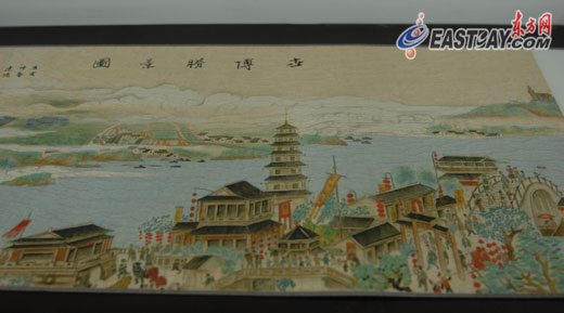 近日,一幅長(zhǎng)2.5米、寬31厘米的《世博勝景圖》在上海師范大學(xué)創(chuàng)作完成。該圖模擬古代名跡《清明上河圖》、《姑蘇繁華圖》,盡收世博園區(qū)各主要展館和上海從古到今的重要地標(biāo)。