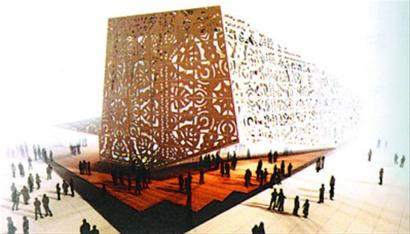 波蘭館外形抽象且不規則,表面布滿鏤空花紋,仿若民間剪紙,使參觀者獲得有趣的視覺體驗:色彩變幻的光線穿過剪紙圖案在館內營造一種明暗錯落的效果。