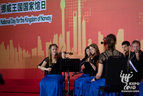 儀式上,特隆赫姆獨奏家樂團帶來了精彩表演。據悉,在今晚的挪威館日文藝演出中,音樂大師譚盾將與挪威少女小提琴獨奏家Hemsing、特隆赫姆獨奏家樂團及特隆赫姆交響樂團合作,帶來譚盾全新創(chuàng)作的小提琴協(xié)奏曲《愛的三次方》的中國首演,這部音樂作品融合了搖滾嘻哈與京劇,但又具有古典音樂的形式。同時,“神秘園”也將參與今晚的文藝演出,屆時觀眾將聆聽到《大自然的賦予》的優(yōu)美旋律,這是由神秘園的靈魂人物、作曲家羅爾夫·勞弗蘭(Rolf Lvland)為挪威館特別創(chuàng)作的管弦組曲,長約15分鐘。
