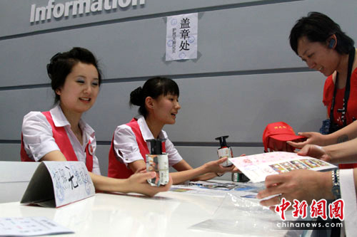 浦西D片區(qū)的石油館是此間熱門展館之一,其4D電影令參觀者回味。同時,禮儀服務人員的溫柔細致也是一大特色,就連枯燥無趣的蓋章處也能找到歡樂元素。“沒有指定頁碼,隨便蓋”, 蓋章處頻頻傳出女性甜美的提示聲,參觀者遞過護照,不僅會收獲一枚章印,還會得到一個微笑。記者觀察到,對參觀者遞過來的多本護照、地圖、白紙,這些身著粉紅工作裝的漂亮服務人員均“來者不拒”,逐個蓋好。來自東北的周女士無護照,只好送上帽子蓋章,得到同意讓她笑靨如花。