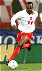 這位1978出生的希臘帕納辛奈科斯隊(duì)的前鋒是一個(gè)尼日利亞人,不過(guò)在波蘭總統(tǒng)的親自過(guò)問(wèn)下,這位黑人前鋒得以迅速加入波蘭國(guó)籍,而他在代表波蘭國(guó)家隊(duì)的第一場(chǎng)比賽中就不負(fù)眾望攻入一球,使本隊(duì)逼平了東歐勁旅羅馬尼亞。他在本次預(yù)選賽中攻入了8球,對(duì)于波蘭第一個(gè)從強(qiáng)隊(duì)如林的歐洲賽區(qū)第一個(gè)出線,起了決定性的作用,也得到了波蘭人民的一致認(rèn)可,已經(jīng)被公認(rèn)為是波蘭的英雄人物。