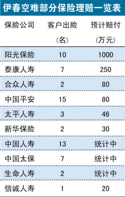 根據(jù)中國保監(jiān)會發(fā)布的公告,經(jīng)初步確認(rèn),遇難人員中有27人在14家保險公司投保了人身險,預(yù)計(jì)賠付1487萬元。其中,15人投保航意險,保額700萬元;12人投保意外傷害保險,保額647萬元;16人投保其他壽險產(chǎn)品,保額140萬元。目前,排查工作還在進(jìn)行中。