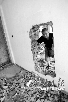 “目前24棟已經完全被拆除,25、26、27棟主體結構被破壞,29棟拆成了‘神仙洞’,31棟拆得漏雨,被稱為‘水簾洞’,幾十戶只好出去租房。在2009年11月還有50余戶居住、30多戶業主未簽約的情況下就開始拆遷,破壞小區達74天之久,已經嚴重違法。”顧先生表示。