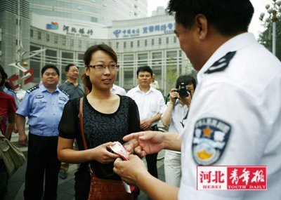 郝召云是一位銷售人員。10日8時她從建設大街拐到中山路,準備倒乘1路公交車。接過市委宣傳部副部長、省會文明辦主任薛建廷頒發的獎金,郝召云有些激動。