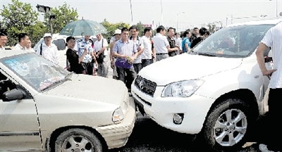 “兩車相撞后,豐田車司機跳下來,大聲對我說,他在洛陽報警多次,說他家里有毒品,可洛陽警方一直不理他。他跑到鄭州,找公安廳找不到,就在這里撞車。”