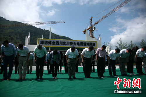 隨后,曾蔭權一行來到漩口中學地震遺址。烈日下,曾蔭權肅立默哀,向汶川大地震遇難者和在抗震救災中英勇犧牲的烈士三鞠躬,獻花祭奠。