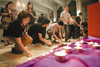 中新網8月27日電 據香港文匯報報道,挾持人質事件中舍身救妻的梁錦榮雖已壯烈犧牲,但其英勇行為備受港人敬佩,其母校伍華中學26日晚為他舉行追思會,除了一眾故友外,行政長官曾蔭權伉儷及不少與他素未謀面的市民都特意參與向他作最后致敬。生前好友盛贊花名“牛榮”的梁錦榮為人率直、有承擔、樂于助人,希望故友安息、梁妻及其子頌學能夠振作,重過正常生活。