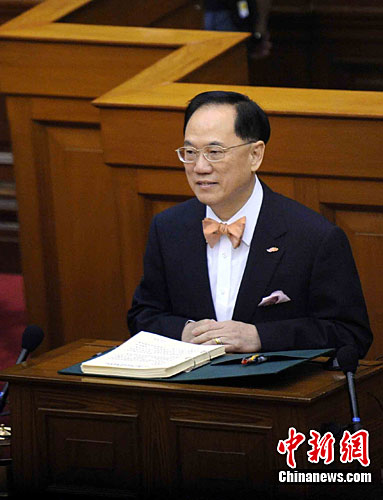 中新社香港10月13日電(記者 周志彬)香港特區(qū)行政長官曾蔭權(quán)13日在特區(qū)立法會發(fā)表題為《民心我心 同舟共濟 繁榮共享》的2010/2011年度施政報告。