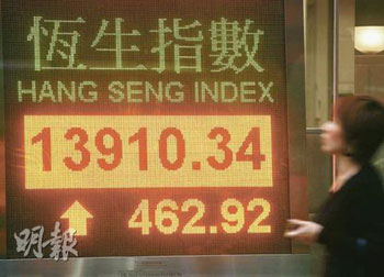 恒指24日勁升462點(diǎn),收?qǐng)?bào)13910點(diǎn),直逼14000點(diǎn)關(guān)口,成交同時(shí)增加,港元匯價(jià)又告轉(zhuǎn)強(qiáng),或反映有資金流入香港。香港金管局24日晚再向市場(chǎng)投入31億港元,這是自上周五以來(lái)第三次向市場(chǎng)注資,令截至本周五銀行體系結(jié)余增至1232億元。任志剛24日早被香港傳媒問(wèn)及時(shí),稱注資很正常。