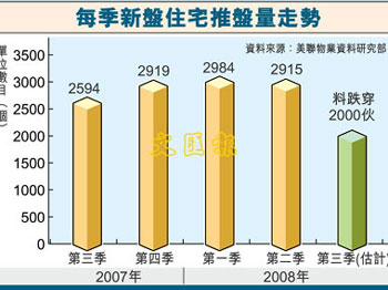 中新網(wǎng)7月7日電 據(jù)香港文匯報(bào)報(bào)道,美聯(lián)集團(tuán)表示,香港過(guò)去數(shù)季發(fā)展商推盤(pán)的單位數(shù)目相當(dāng)穩(wěn)定,近3季均維持約2900個(gè)單位左右的水平,預(yù)期第三季未會(huì)再有此類項(xiàng)目,加上近期樓市氣氛未及年初,因此相信第三季發(fā)展商推盤(pán)步伐會(huì)有所減慢,估計(jì)單位將跌穿2000個(gè)的水平,較第二季跌三成,并創(chuàng)5個(gè)季度的新低。