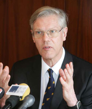 羅永成本月4日抵港,在港停留4天,主要是進一步拓展倫敦金融城市與香港在金融事務上的聯系,推廣倫敦金融城的碳排放額貿易項目,以及與香港分享該城在發展伊斯蘭金融產品的專業經驗。他8日在香港交易所兩場有關碳貿易的研討會上發表主題演講,之后會見傳媒。