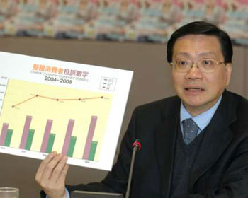消委會去年接獲4.2萬宗投訴,較前年增加3500宗,打破歷年紀錄。張炳良總結數字時表示,投訴個案創新高,主要是消費者于去年面對金融危機,令金融服務投訴大幅攀升,增幅超過10倍。若“扣除”9200多宗金融服務投訴個案,多項主要類別投訴均下降,包括電訊、商品和服務,而涉及旅客投訴也減少。