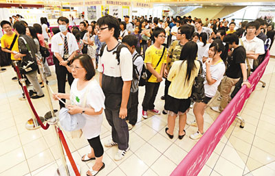 擁有英國大學學位、過去多年在內地一間公司擔任工程師的麥先生高峰期一度月入2萬元,不過一場金融海嘯,令他和10多名同事的飯碗都被卷走,因此2日也到場應征僅8500元月薪的地產代理工作。