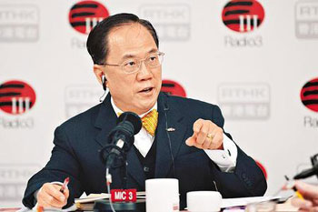 據悉,有關應對樓巿問題由曾蔭權親自過問,并由財政司司長曾俊華及金管局總裁陳德霖合力處理。消息透露,日前陳德霖召見多位香港銀行高層,提出2000萬元豪宅以上的按揭要由70%降至60%,也是曾蔭權授意下進行,目的是壓抑過于瘋狂的豪宅巿場,同時還要防止金融風險。