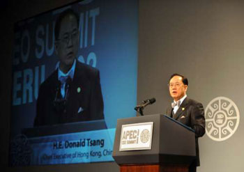 亞太經(jīng)合組織(APEC)會議將于下月舉行,金融海嘯將是重要議題之一,曾蔭權(quán)說,屆時將會提出規(guī)管評級公司、對沖基金及會計程序等意見,以應對金融危機。他表示,今次會議意義重大,如果能夠促成世貿(mào)多哈回合談判重開,將有助香港貨品每年節(jié)省數(shù)以億元關稅,讓香港服務專業(yè)可以進一步走向國際化,并增加就業(yè)機會。