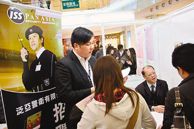 泛亞警衛4日提供80個保安員職位,該公司培訓經理曾沛焜表示,為留住人才,集團旗下保安員今年的薪酬較去年上升5至10%,以高級大堂經理為例,月薪由去年的10500元上升至11500元,“英語普通話是基本要求,也要懂得急救技術”。