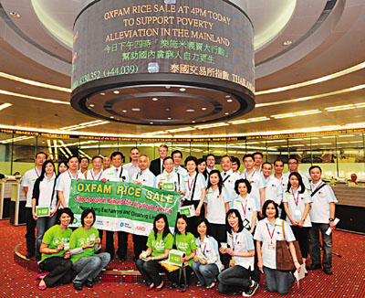 中新網(wǎng)5月31日電 據(jù)香港文匯報報道,港交所參與由非牟利機構公益企業(yè)舉辦的2010年“雇員義工周”。日前于港股收市后,港交所行政總裁李小加與董事會成員、高級行政人員及港交所的義工,到交易大堂及港交所的各辦公地點義賣“樂施米”,以支持為幫助內(nèi)地扶貧工作的“樂施米義賣大行動”。