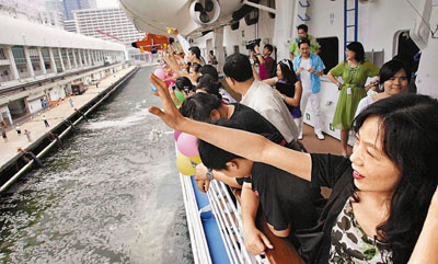 中新網8月3日電 據香港《文匯報》報道,兩岸旅游政策進一步放寬后,首個接載內地旅客經香港赴臺的郵輪之旅2日啟航,吸引800名來自上海、北京、廣州等城市的20多個旅行團參加,寫下兩岸三地旅游業的新一頁。