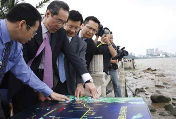 大橋口岸將采用“三地三檢”設計,相對于珠、澳口岸設置在拱北灣附近填海修建的同一人工島上,目前港方正考慮在香港機場東北對開海面填海,修筑口岸人工島。記者獲悉,現時三地口岸的總體布置推薦方案已出爐,并初步獲得粵港澳三地政府及運作部門的認可。