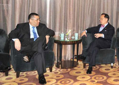 中新網(wǎng)3月4日電 據(jù)香港中通社報道,香港特區(qū)行政長官曾蔭權及澳門特區(qū)行政長官崔世安3日下午抵達北京后,兩人共進晚餐。曾蔭權及崔世安將列席5日全國人大會議開幕式。