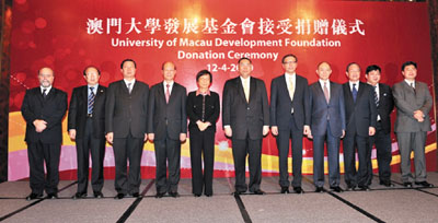 另外,澳大前日舉行隆重的捐贈儀式,由何鴻燊博士的代表蘇樹輝、呂志和基金有限公司的代表呂耀生、澳門霍英東基金會的代表霍震寰以及曹其真向澳大發展基金會致贈共1.2億捐款,并由澳門特別行政區行政長官、澳大校監崔世安博士代表接收。是次捐贈將作為基金會的永久性基金,將按有關住宿式書院運作的實際需要而提供資助,如設立獎學金、獎項、學術演講、外訪活動、交流生計劃等。