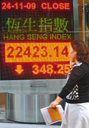 因內地股市24日下午出現恐慌性拋售拖累,港股午后開市即挫200點,收跌348點,失守22500水平。(圖片來源:香港文匯報)