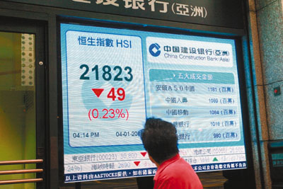 4日,一拖大升15.74%至5.81元,超大升8.07%至8.97元,而中化化肥升5.99%至4.6元。同時,汽業股為另一政策受惠股,財政部、商務部提高汽車以舊換新補貼標準,令汽車股普遍造好,慶鈴大升15.79%至2.2元,華晨升7.76%至2.36元,東風升6.98%至11.96元。相反,銀監會主席劉明康指樓市結構性泡沫的風險與日俱增,加上市傳恒大因廣州清算閑置“地王”被罰,令股價跌3.03%至4.16元,而世茂房地產及合景泰富也跌逾3%。