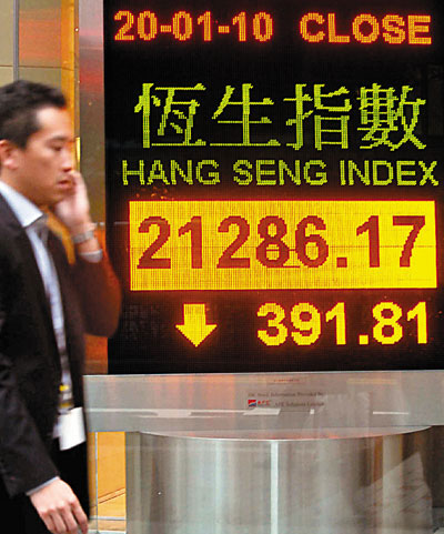中新網1月21日電 據香港《文匯報》報道,恒指20日收報21286點,跌391.8點,成交752億元。A股同樣下跌,上證跌95點報3151.8點,跌幅近3%。國指則跌2.5%,報12,282點,勁跌318.6點。