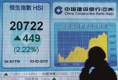 中新網2月4日電 據香港《文匯報》報道,受惠A股午后發力上沖,上證綜指重越3000點大關,港股3日連續第3天上升,最多曾升逾500點,收報20722點,升449點,升幅2.22%,為11月30日以來最大單日漲幅,成交稍增至690.6億元。