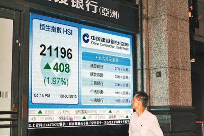 中新網(wǎng)3月9日電 據(jù)香港《文匯報》報道,美國就業(yè)數(shù)據(jù)理想,加上法國表示會支持希臘,紓緩歐洲債務危機,亞太區(qū)股市普遍造好,港股8日也跟隨上升,最多曾升469點至最高的21257點,收市報21196.8點,升408.9點,不單收復21000點大關,更一舉升穿50天線,創(chuàng)6周收市新高,升幅達2%,但成交額只有650億元。