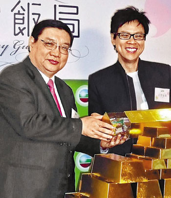 中新網(wǎng)8月14日電 據(jù)香港《文匯報(bào)》報(bào)道,香港無(wú)線總經(jīng)理陳志云13日邀請(qǐng)財(cái)經(jīng)界名人曹仁超接受《志云飯局》訪問(wèn),更送上多條大金磚給曹仁超。陳志云大爆曹仁超愛(ài)收藏金磚,最高峰時(shí)期家中有三個(gè)保險(xiǎn)箱擺放金磚,收藏黃金1000兩,即相等于眼前的金磚約40條。