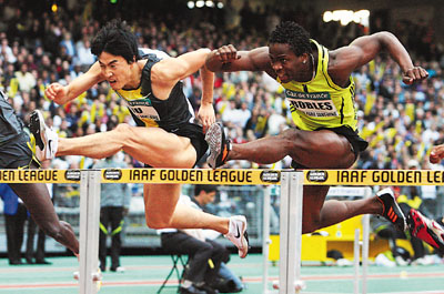 “只要他(羅伯斯)養好傷,(最大對手)肯定還是他。巴巴多斯那個……(柏林世錦賽冠軍布拉斯懷特,不過劉翔叫不上來他的名字),跑13秒零幾沒問題,但是跑進13秒估計有難度。我還是看好羅伯斯。”這一點,劉翔師徒非常一致,孫海平教練也表示:“羅伯斯的問題不大,之前他的傷不太嚴重,主要是擺動腿的力度,過欄那一下,他的問題不是很大,跟劉翔沒法比,養一段就好了。”