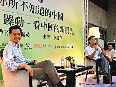 “思沙龍”以《你所不知道的中國(guó)》為題,參加人數(shù)超過(guò)300人,據(jù)說(shuō)還有不少人不得其門而入。梁振英在演講中不忘“銷港”,談到過(guò)去30年,香港也參與在內(nèi)地的改革開(kāi)放之中,香港與內(nèi)地的互動(dòng)發(fā)展不僅在經(jīng)濟(jì)方面,而在文化、生活方式、語(yǔ)言、以至觀念等各方面都已經(jīng)發(fā)展到“你中有我,我中有你”的相互影響的狀況。