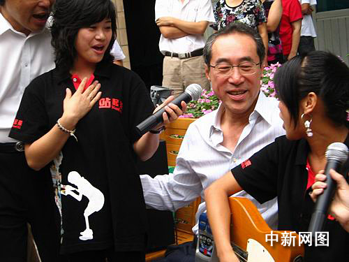 在地震傷員康復中心,唐英年受到了熱烈的歡迎。今年10歲的夏鳳婷地震時右肘部骨折,但愛好畫畫的她用安裝的機電手,為唐司長畫了一幅色彩斑斕的海上日出。幾位腿部受傷的少女聲情并茂地唱起了《小城故事》,在她們動人歌聲的感染下,唐英年興致勃勃地走到中間一起唱了起來。另一位雙腿都安裝著假肢的青年則在一旁表演起了自行車,向唐司長展示自己的康復成果。