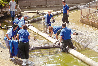中新網(wǎng)9月9日電 據(jù)香港《文匯報》報道,香港海洋公園8日晨派出專家到青衣公園,協(xié)助康文署人員捕捉漏網(wǎng)的褔鱷,成功捕走3條福鱷及包括1條淡水虎鯊在內(nèi)的其它魚類。海洋公園表示最多接收5條福鱷作為展覽用途。
