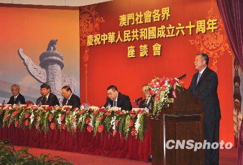 何厚鏵在致辭時(shí)表示,在國(guó)家六十華誕即將到來(lái)之際,澳門(mén)回歸祖國(guó)亦快將十周年。“一國(guó)兩制”方針和祖國(guó)的繁榮富強(qiáng),是保持澳門(mén)長(zhǎng)期繁榮穩(wěn)定的根本保證。