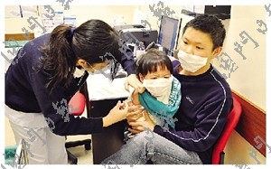 家長帶同子女到衛生中心接種疫苗。(圖片來源:澳門日報)