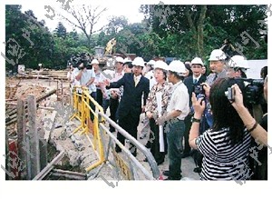 陳麗敏、譚偉文等昨日視察石排灣郊野公園熊貓館建館情況。譚偉文表示,建館工程進度理想,正全力趕工完成基礎土建部分,接著會展開上蓋部分。由于已進入雨季和臺風季節,有關承建單位已作好防風雨的準備工作,盡量減低天氣對工程的影響。以目前情況來看,相信可爭取九月前完成整項工程。