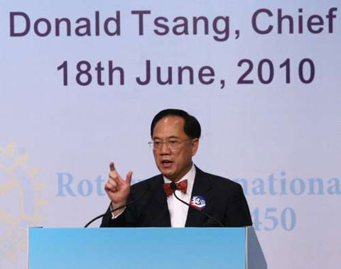 曾蔭權呼吁支持政改 稱普選不會"從天而降"(圖)