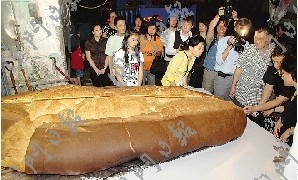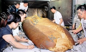 中新網(wǎng)5月22日電 《澳門日報(bào)》今日在頭條刊發(fā)報(bào)道稱,由澳門金馬輪咖啡餅店焗制的巨型豬扒包于21日舉行的“愛在澳門——第二屆世紀(jì)婚禮兩岸四地2009”活動開幕儀式中亮相,將申請成為吉尼斯世界紀(jì)錄大全中的全球最大的豬扒包。21日不少與會者均對巨型豬扒包十分感興趣,紛紛與包合照,場面熱鬧。