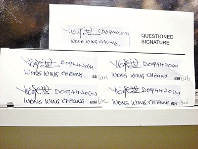龔家證人上周作供完畢,法庭15日開始傳召專家證人作供。華懋慈善基金傳召的英國筆跡專家Robert Radley,分析王永祥提供的35個簽名樣本,其中20個是王永祥特意為案件而簽,其余15個則是他于1995年至2007年文件中的簽名。Robert Radley將簽名樣本跟“06遺囑”中的簽名比較,發(fā)現(xiàn)有10多個不同處,他15日在法庭內利用顯微鏡及投射機,將不同處逐個投射到大熒幕解釋。