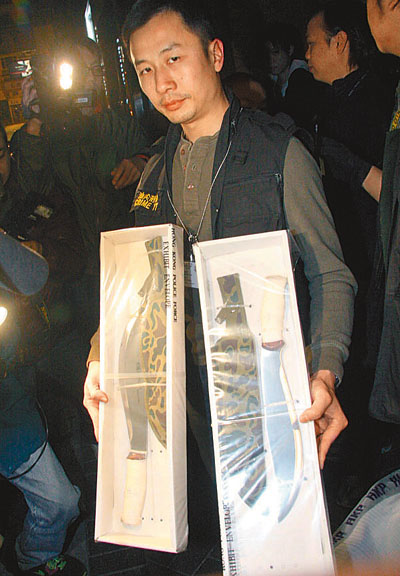 為防黑幫再作街頭火拼,油尖警區(qū)反黑組先發(fā)制人,27日凌晨1時許根據(jù)線報,掩至漆咸道南一間私人會所搜查,搗破黑幫武器庫,檢獲兩柄染有血漬開山刀及三支長電筒,以涉嫌藏有攻擊性武器罪拘捕何姓、24歲會所負責(zé)人,并會檢驗利刀有否涉及血案。