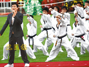中新網(wǎng)5月5日電 據(jù)香港文匯報報道,香港各界青少年迎奧運系列活動委員會4日在香港大球場舉行“心系奧運.中華青年大聯(lián)歡”,劉德華、金培達(dá)、李克勤、方力申等香港藝人及內(nèi)地歌手周筆暢、王宏偉參與演出,陣容相當(dāng)龐大。