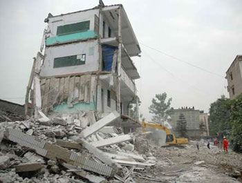 災(zāi)區(qū)不少校舍在地震中倒塌。(圖片來源:大公報(bào))