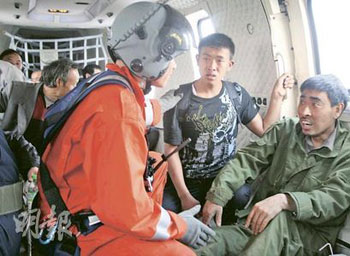 中新網6月2日電 據香港明報報道,香港飛行服務隊于四川綿竹高原山區,在超級美洲豹直升機用盡最后一滴汽油之前,驚險地將2名迄今被困最久(19日)的礦工,以及6名解放軍空降兵救起。“我們降落機場時,汽油剛剛用完,拯救時間每拖延一分鐘,便多一分危險!”港府飛行服務隊高級機師鄧東成說。