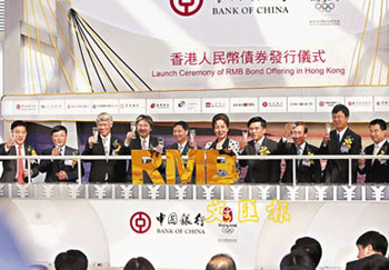 據(jù)悉,緊接交行之后,中國(guó)銀行將第二度在港發(fā)行人民幣債券,另外,建設(shè)銀行、國(guó)家開(kāi)發(fā)銀行及中國(guó)進(jìn)出口銀行亦計(jì)劃在港發(fā)行人民幣債券。五間銀行發(fā)債規(guī)模不少于150億元。
